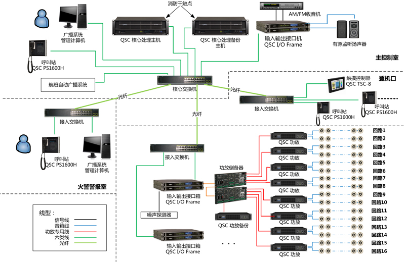 ·  安全性。為了保證機場各項業務的正常運轉,廣播系統必須保證具有相當高的安全可靠性,核心設備及信號鏈路必須具有相當完善的冗余備份能力。