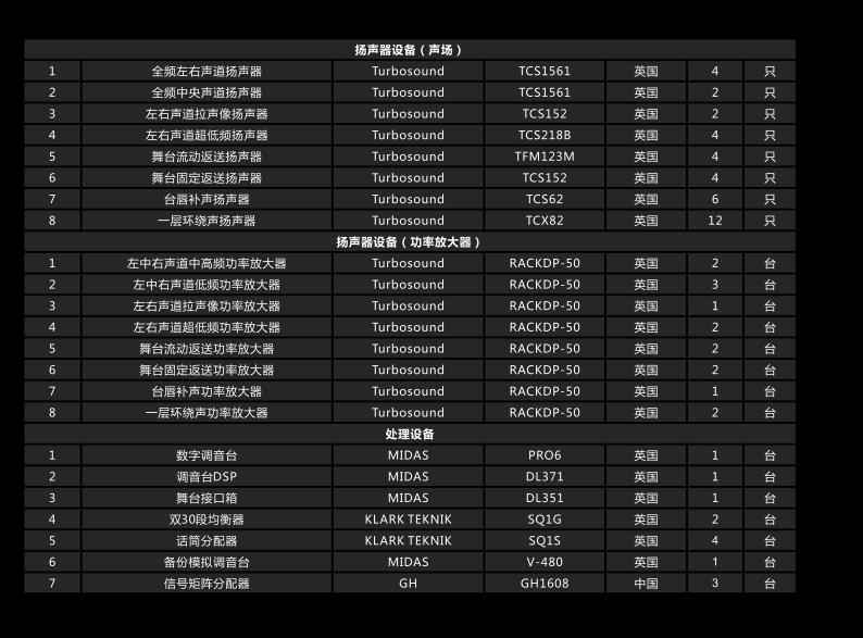 本方案足中型的演出場所,有座位約600到800席.觀眾席面積約600多平方米.主擴聲系統主要使用了全頻揚聲囂和越低頻揚聲器.在舞臺口正上方設置中央揚聲器組,形成左、中、右揚聲器組擴聲方式.3組揚聲器分別接于具有sisTM輸出的Midas數字調音臺PR06,供3組各自分立的聲音通道,左、右揚聲器組分別包括上,下各一組揚聲器,上組揚聲器保證全場聲場的均勻分布.下組揚聲器用于聲像定位,佩證觀眾廳前后場有準確的定位扣均勻的聲壓,超低頻揚聲器用于補充場地中的低頻能量,舞臺上設有4只流動返進揚聲器TFMl23M.以確保舞臺上的表演者能夠清晰地聽到自己的聲音,為克服前排觀眾聲像太寬和直達聲不足的缺陷.在臺唇處設置了6只TCS62性能優越的小口徑揚聲器,為營造更具感染力的表演效果,最后還添加了12只揚聲器為環繞聲.6調音臺系統實現64路混音處理能力,同時,配置模擬調音臺,能夠實現數模雙備份功能并采用sQls信號分配囂可以在該場所里實現多工位的信號分配.