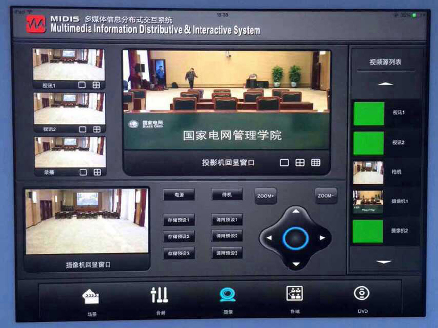 在該項目中,系統采用的是MIDIS多媒體交互式云管理平臺,高效交互式平臺真正實現了控制管理過程中的無障礙管理,是對傳統系統功能的延伸和擴展。該系統能夠完全實現用戶之間的無障礙多媒體控制,總控中心內可以與其它會議室通過音視頻實時交互,交流的手段可以是文字、圖像、聲音或視頻等多種手段。系統提供給用戶“對等無障礙交流”模式。連入網絡的任何人的視頻、語音、文字、圖畫、文件以及其它資源,都能在所擁有的權限內以近乎隨心所欲的方式進行共享和交流。交互平臺不僅提供了理想的信息交互環境,實現與實驗室IP監控系統的數字對接,可以把所有實驗室IP監控攝像機的圖像在此套系統里呈現,真正實現了統一管理,互連互通、互切換、互控制。